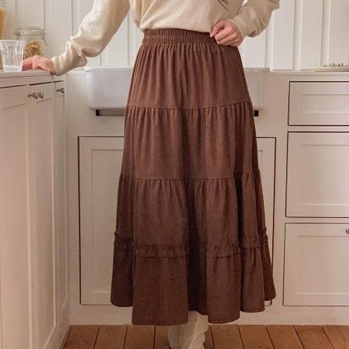 [다잇템][다잇템] 여성 로맨틱 치마 코듀로이 잔주름 롱 프릴 티어드 가을용_23197388_588872