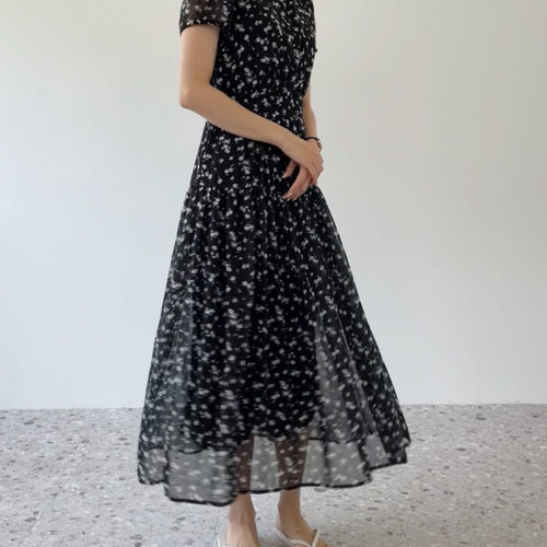 엘브 플라워 쉬폰 반팔 롱 원피스 여름 바캉스템 휴가룩