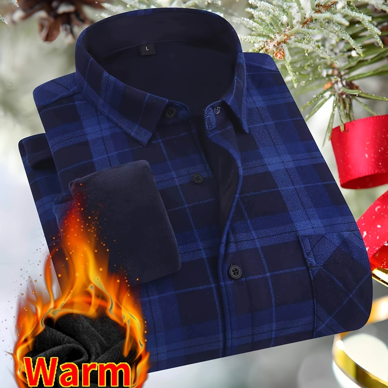 TEMU [1pc 체크무늬 긴팔 셔츠] 남성용 캐주얼 체크무늬 긴팔 셔츠 - 두꺼운 따뜻한 폴리에스터 니트 소재, 정상 핏, 버튼다운 칼라, 포켓, 우산 밑단, 가을/겨울 야외 착용용