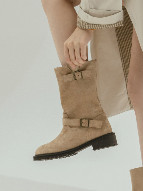 [정상가:136,000원] KM107-P 핸드메이드 스웨이드 스트랩 미들부츠 I 2Colors