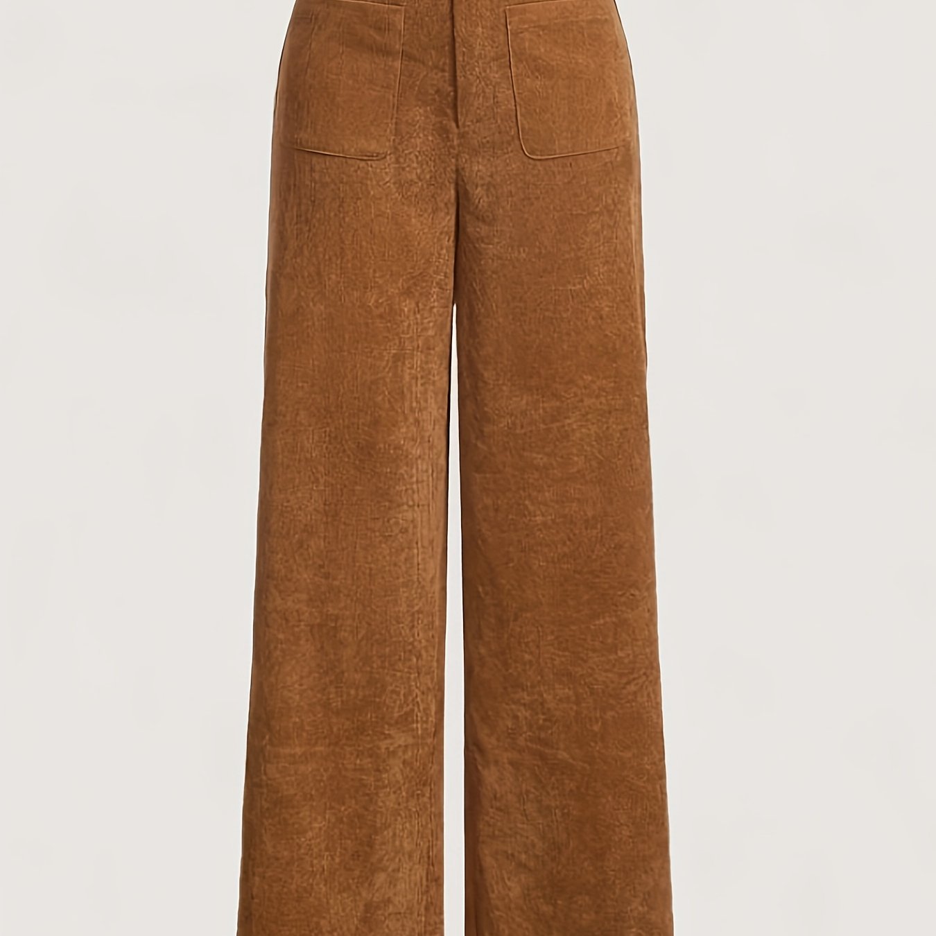 TEMU 여성용 우아한 하이웨이스트 와이드 레그 팬츠 - 캐주얼 브라운 코듀로이 포켓, 단추 클로저, 세탁기 사용 가능 - 가을/겨울에 완벽함
