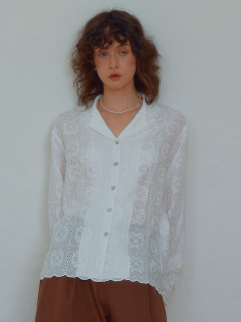 [데이바이데이] 로즐리 레이스 오픈 카라 셔츠_화이트