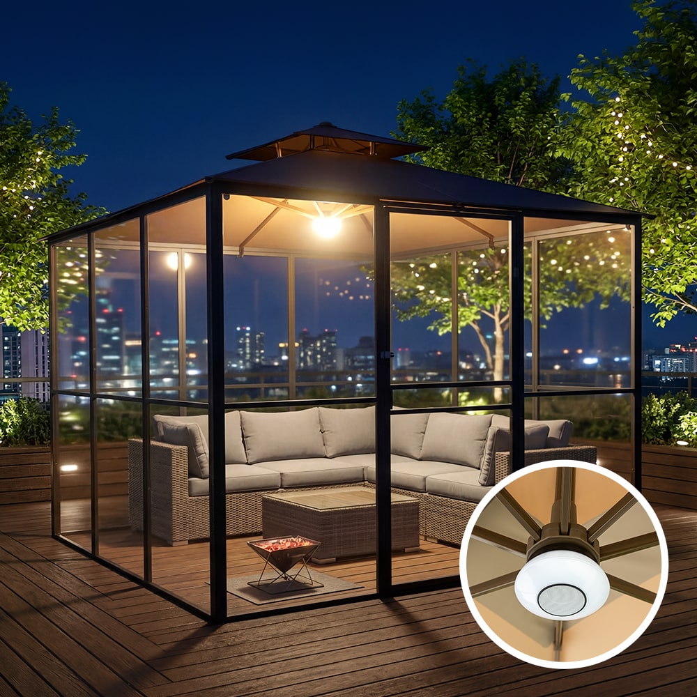 스퀘어가든 3M 파라솔 LED 포함 야외 투명벽 쉘터 글램핑 캠핑 그늘막 테라스 정원 옥상