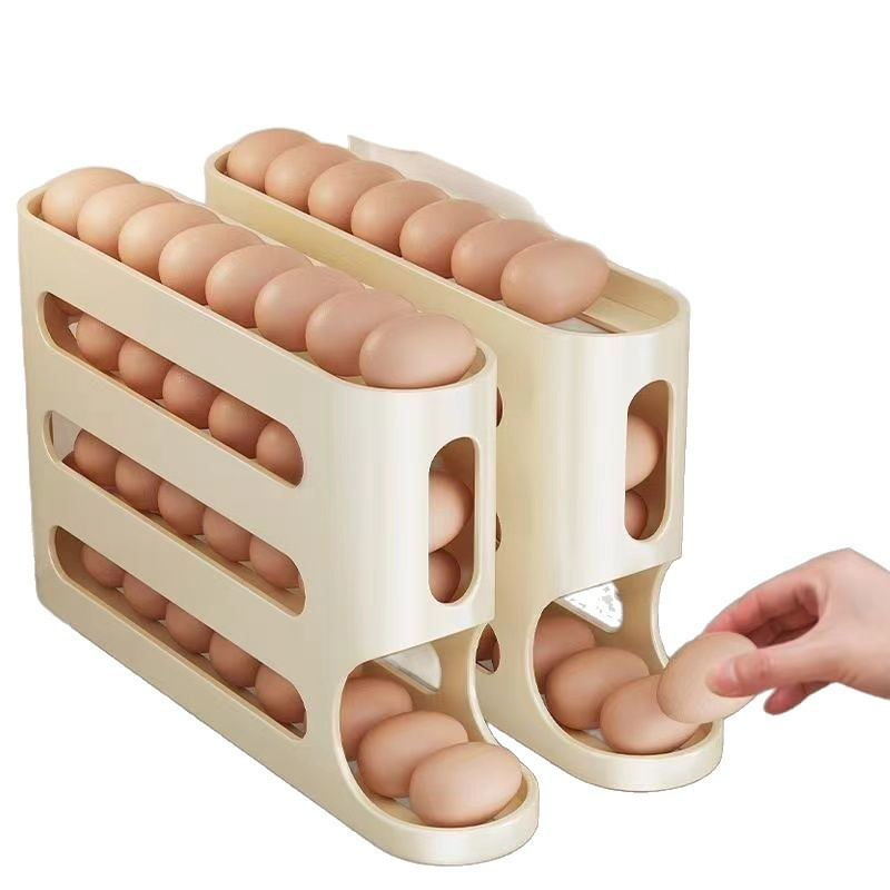 TEMU 계란 정리함 대용량 자동 롤링 에그 홀더 - 냉장고 도어 측면 수납 선반 , (신선한 계란 회전형 슬라이드 디자인, 공간 활용 정리 수납함