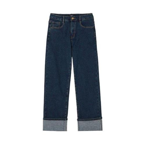 메이첼 여성용 하이웨이스트 슬림핏 일자 롤업 진청 청바지 02035