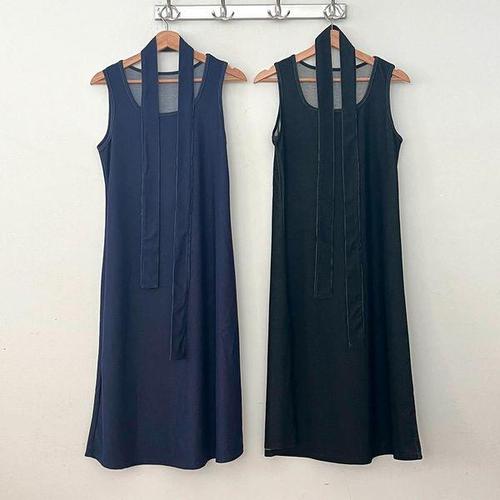 에이치다 / 버니 뒷리본 민소매 롱원피스 바스락원피스 3color