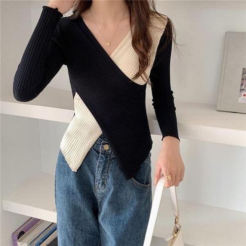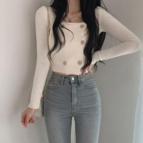 [하프클럽/]여자 버튼 슬림핏 코디 잔골지 롱슬리브 니트