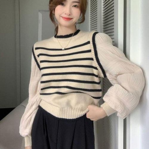 플리츠 걸스 니트상의 이지 패턴 니트웨어 롱티티 WFJIXQ6