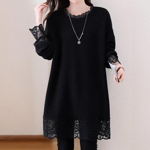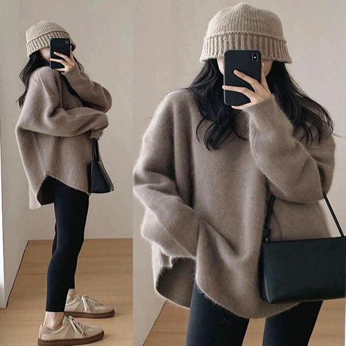 라뷰드 오버핏 도톰 브이넥 롱니트 여성 겨울 원피스 두꺼운 루즈핏 여자 스웨터 빅사이즈 여리핏 긴팔 니트 단독 레이어드 여성 상의