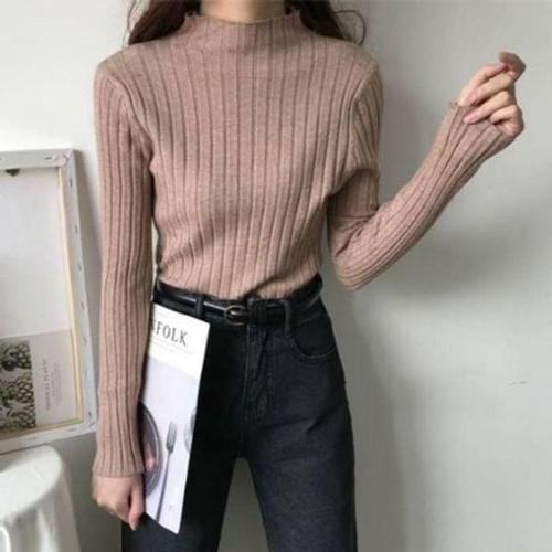 따뜻함우먼 목폴라 티탑 시즌 니트립 폴라넥 여성용 롱티 하이넥티 WFJIX86