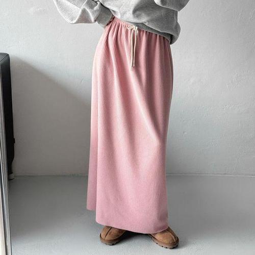 [옷자락]여자 골지 키큰녀 맥시 뒤트임 니트치마 밴딩 롱스커트