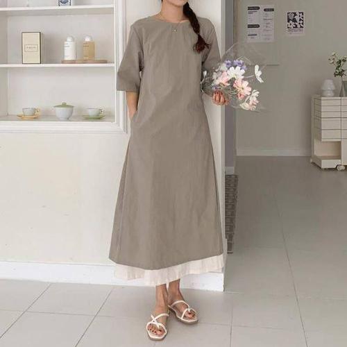 (국산면원단/국내자체생산) ON3007 뷰티풀 스마일 양트임 면 박스 롱 원피스 20대30대여성의류
