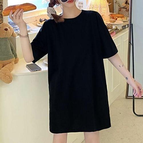 여성 티셔츠 무지 사계절 레이어드 롱 박시 오버핏 루즈핏 반팔 기본 면티