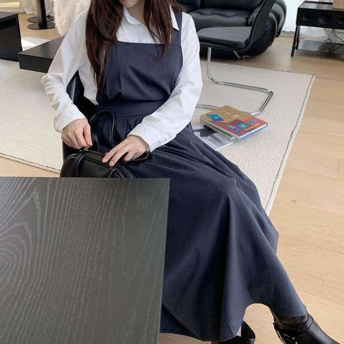 [나크21]백라인 뒷밴딩 뷔스티에 A라인 롱 원피스 DM43-O-05