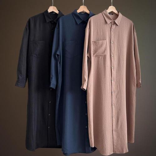 [신상오픈런]여성 루즈핏 카라넥 린넨 롱셔츠 원피스