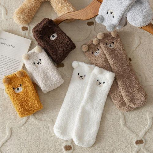 패션양말 곰돌이 수면 양말 양털 여성 캐릭터 소녀 여자 감성