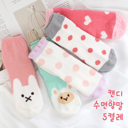부드럽고 따듯한 여성 수면양말 5켤레 덧신 중목 롱 캐릭터 겨울 양말
