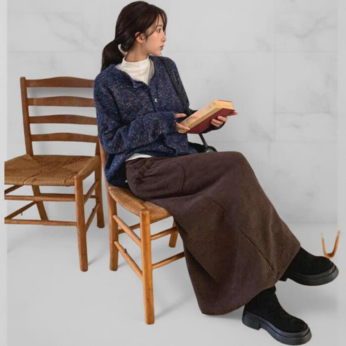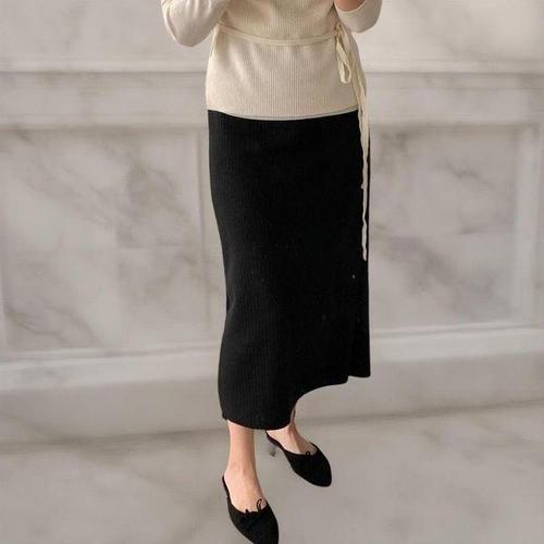[옷자락]여성 겨울 일상복 H라인 골지 니트 슬림 롱스커트