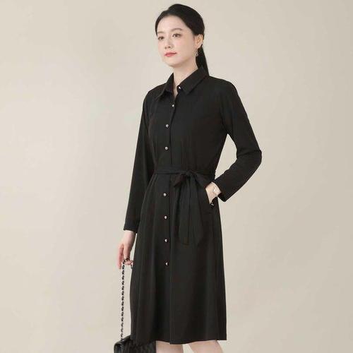 [애비뉴투지]엄마옷 하객룩 스탠드 카라 단추 오픈 벨트 A라인 여성 봄 가을 롱 긴팔 원피스 K10544