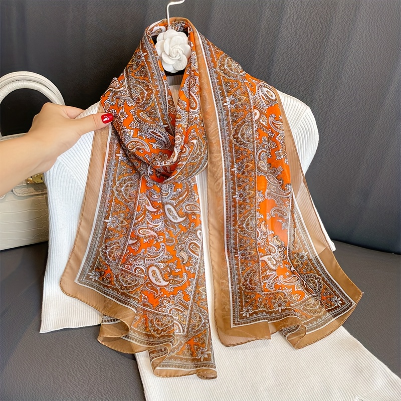 TEMU 여성용 가벼운 폴리에스터 롱 스카프 - 우아한 페이즐리 프린트, 신축성 없는 통기성 넥 랩, 봄 & 가을용 다재다능 캐주얼 시크 액세서리