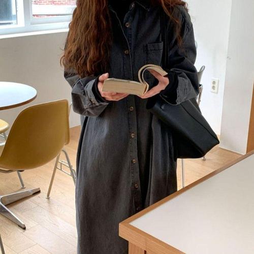 2컬러 루즈핏 롱한 데일리 데님 셔츠형 청 롱원피스 WFNQVPZ