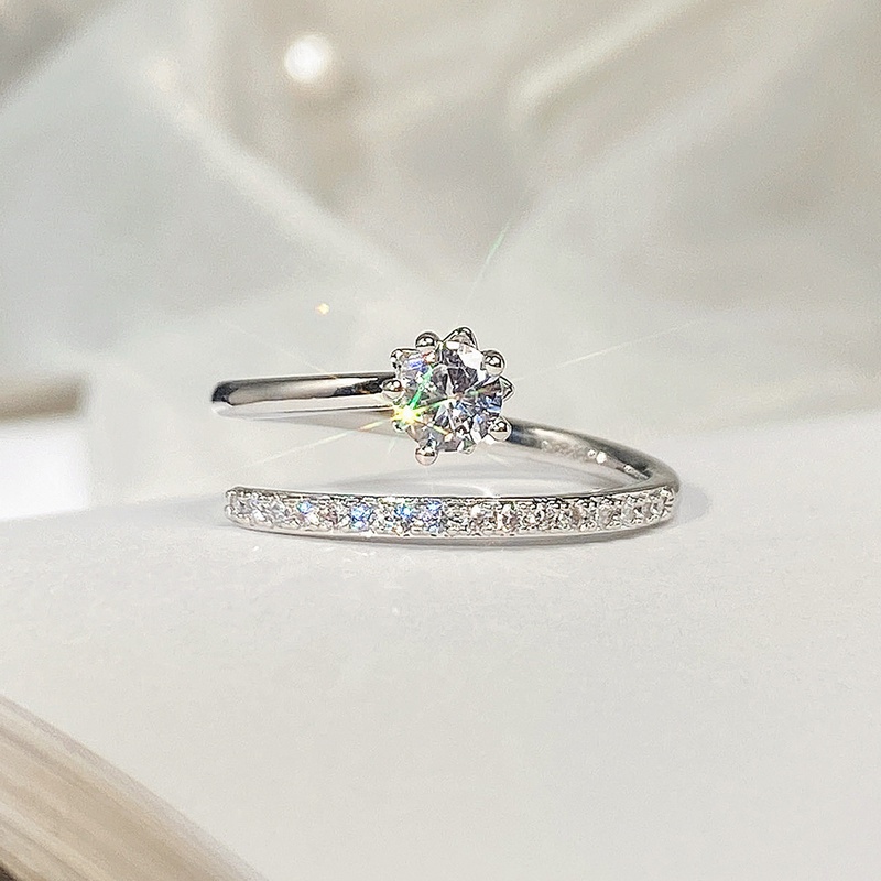 TEMU 여성용 일상 캐주얼 파티 웨딩 장식용 고급스러운 5개 프롱 지르코니아 오픈 링