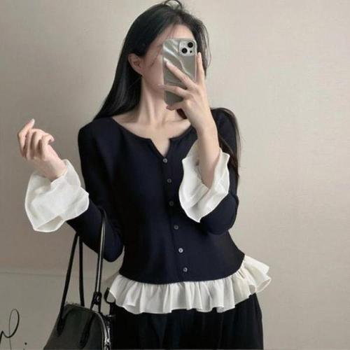 [다잇템_패션]여자 코디 롱슬리브 귀여운 블라우스 슬릿 니트