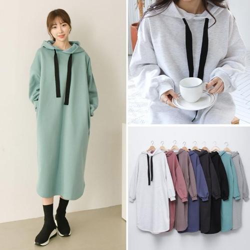 바이엘르 겨울 기모 따뜻한 후드 맨투맨 롱 원피스 빅사이즈