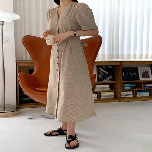 여성 2컬러 여름 사랑스러운 체크패턴 반팔 롱 원피스 WFJG30M
