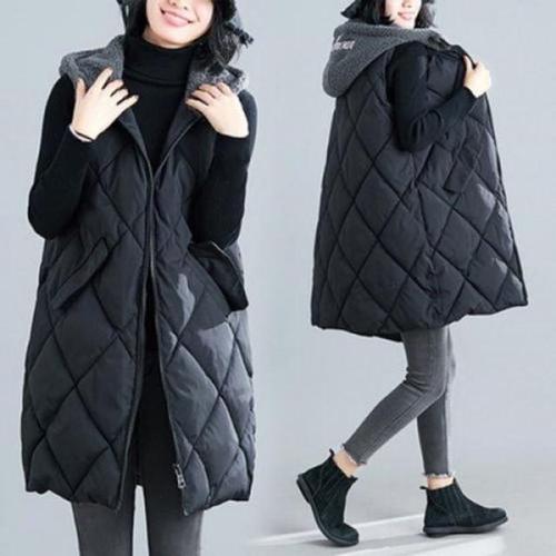 여성 가을 겨울 패딩 베스트 패션 아우터 캐주얼 후드 민소매 코트 상의 루즈핏 데일리 롱 조끼 점퍼 빅사이즈 YMY