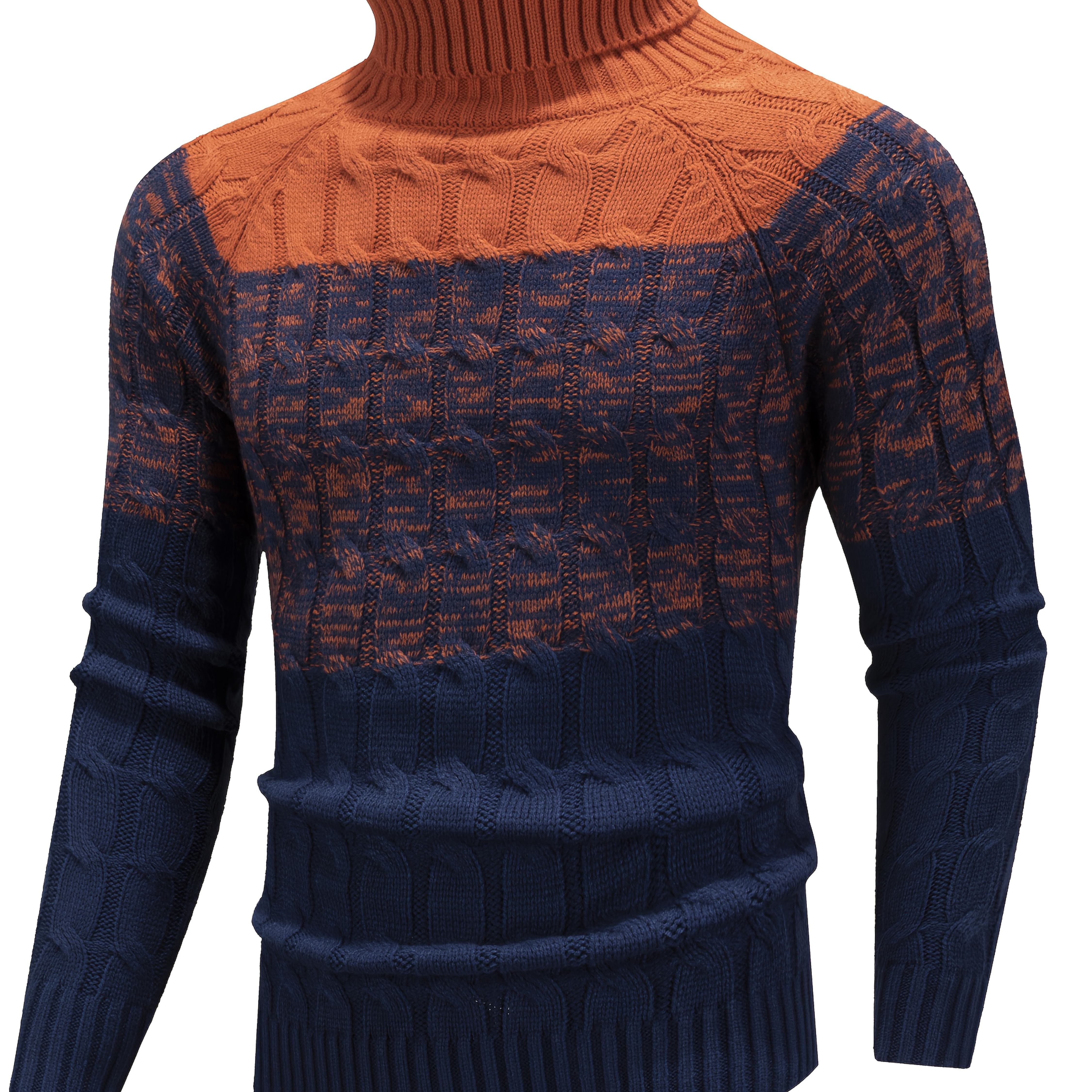 TEMU 남성용 겨울 따뜻한 두꺼운 하이넥 스웨터 - 빈티지 컬러 풀오버, 레귤러 핏 소매 블렌딩 컬러 캐주얼 웨더, 가을 & 겨울 의류 (손세탁 가능)