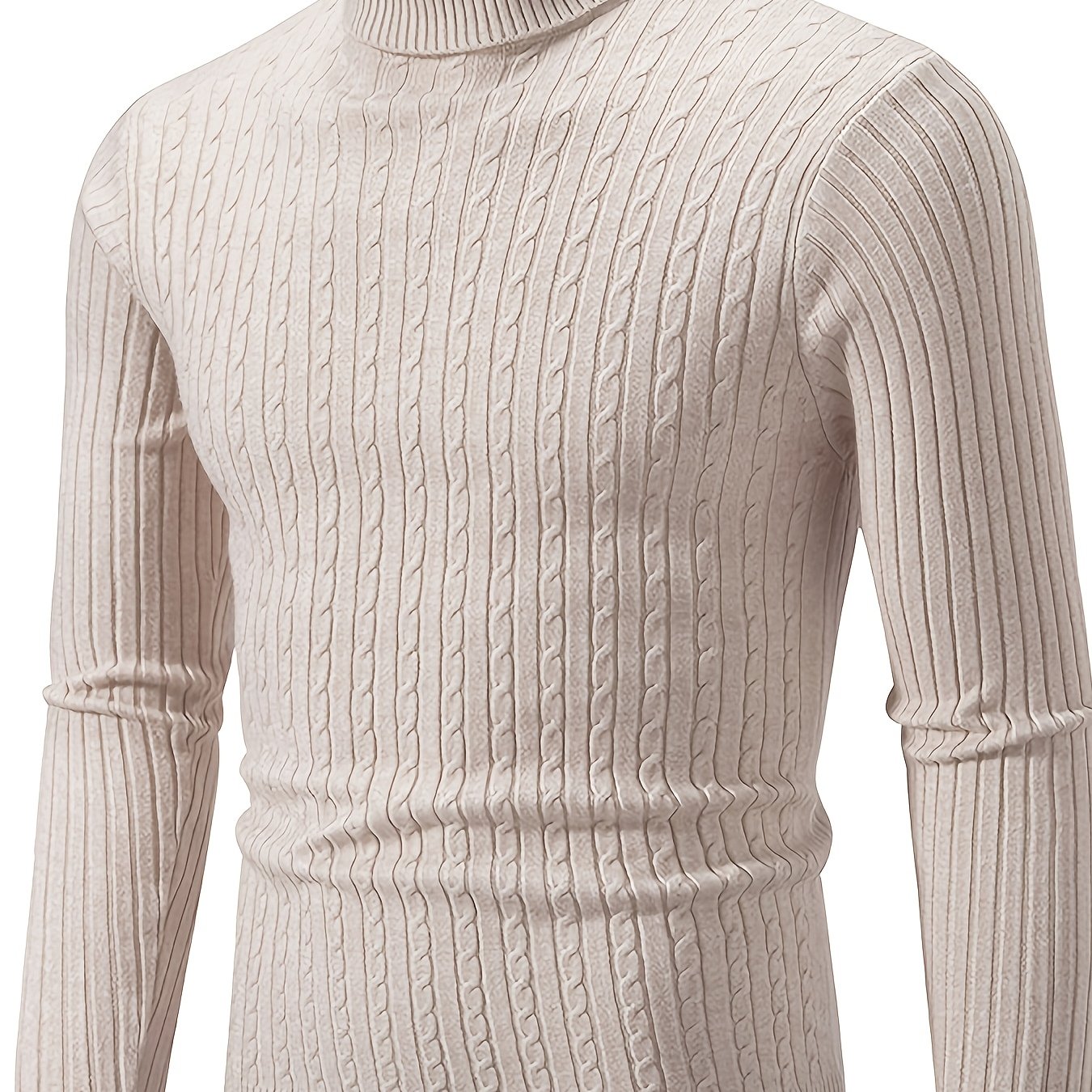 TEMU 남성용 하이넥 단색 두꺼운 캐주얼 니트 스웨터 | 가을/겨울, 레귤러 핏, 신축성 좋은 원단