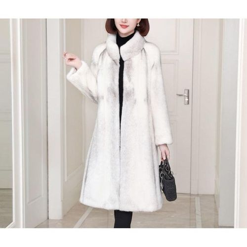 여성 중장기장 페도리 플리스 퍼 재킷 화이트 크로스 스웨이드 롱칼라 M 45.0-55.0kg
