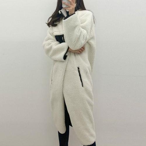 롱코트 캐주얼 여성 패션 레트로 롱 후리스 점퍼 자켓 데일리