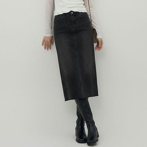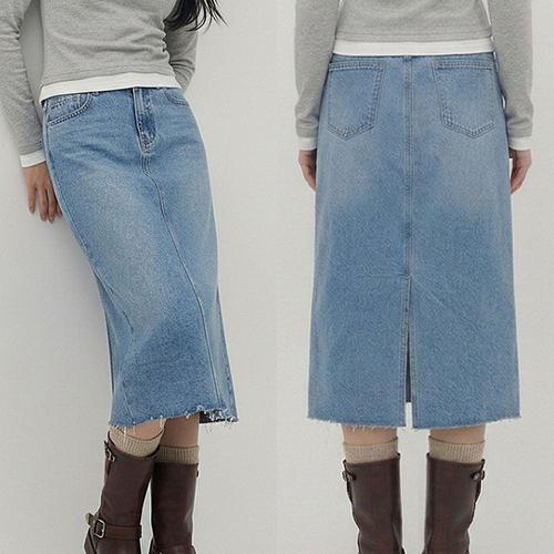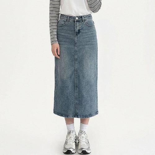 여자 스판 워싱 롱 데님 스커트 뒷트임 청치마 WFNADLC