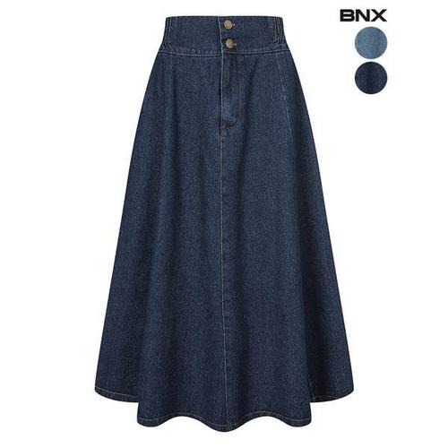 [BNX]여성 데님 투버튼 A라인 플레어 롱 스커트