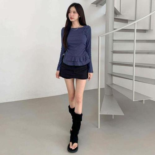 [다잇템]여성 코디 롱슬리브 코르셋 프릴 티셔츠 스타일