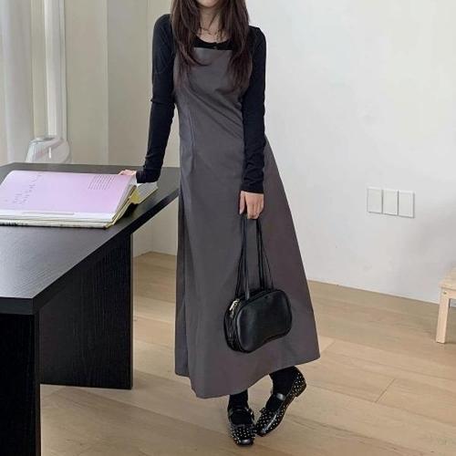 [다잇템_패션]여자 코르셋 캐쥬얼 롱 반소매티 코디 원피스