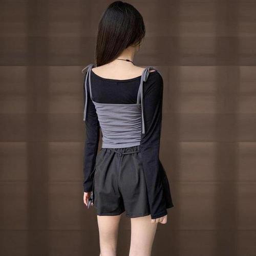 [다잇템_패션]여성 코디 티셔츠 코르셋 롱슬리브 힙무드 세트