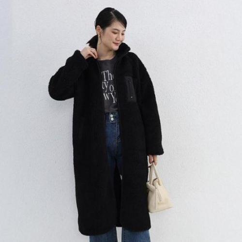 [신상오픈런]여성 하이넥 포켓 디테일 뽀글이 롱 후리스 코트