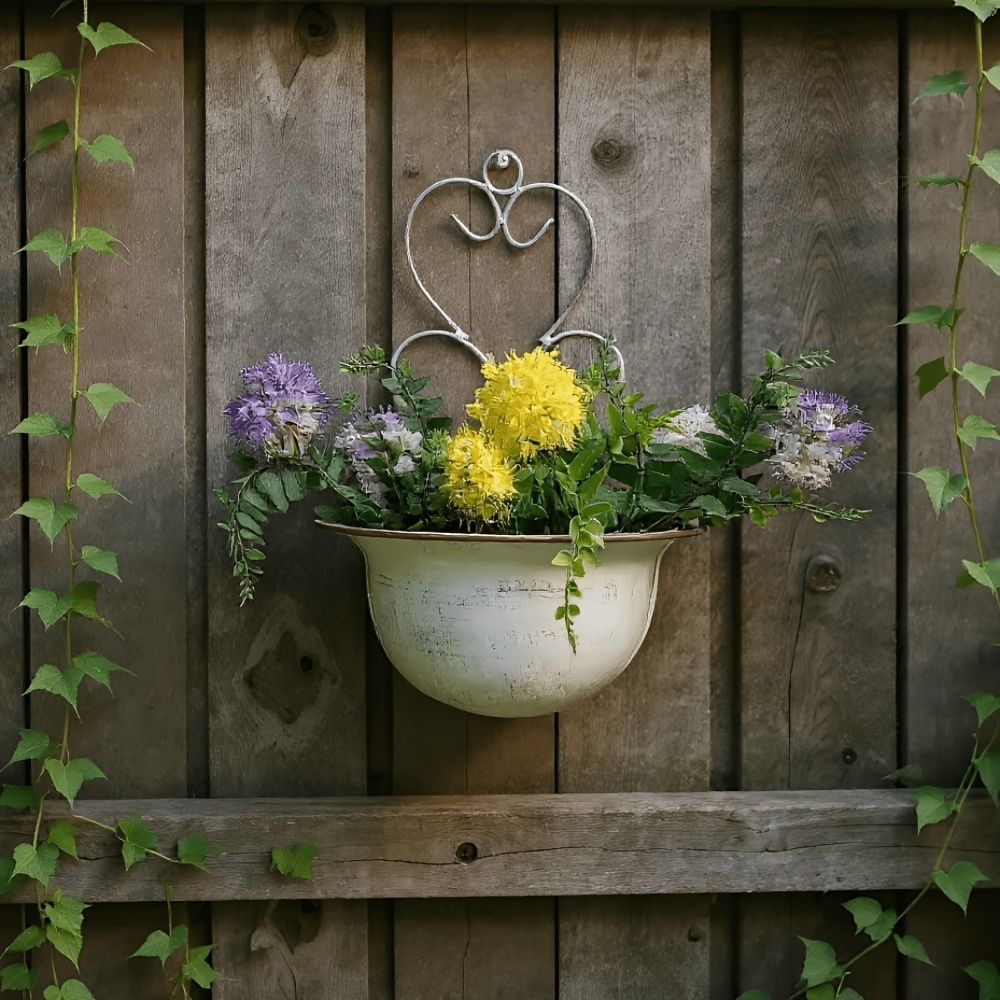 TEMU 레트로 파스텔 스타일의 메탈 벽걸이 꽃 받침대 꽃 바구니 화분 1개 - 레트로 야외 장식용 꽃 받침대, 발코니, 정원 및 테라스에 적합, 다육 식물 및 작은 식물에 이상적