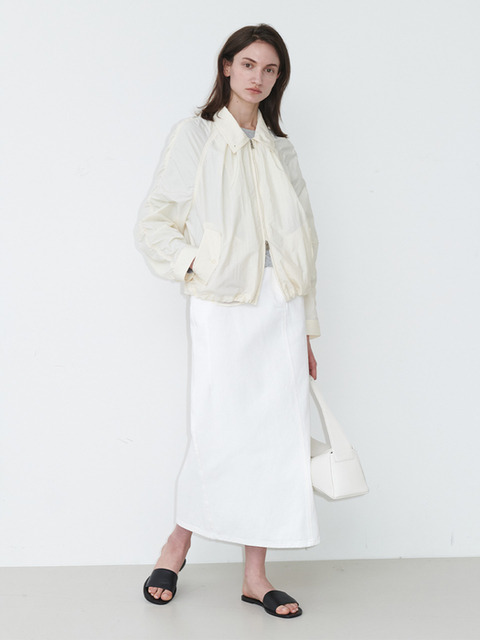 [루에브르] 비대칭 슬릿 롱 스커트_화이트