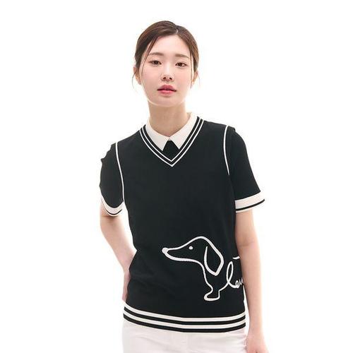 [루이까스텔]여성 루이스 라인 닥스훈트 클래식 V넥 니트 베스트