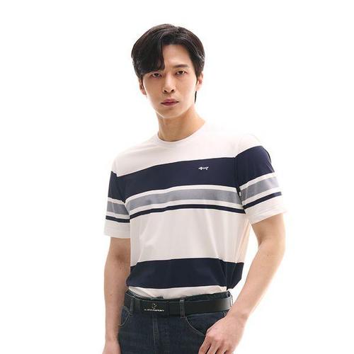 [루이까스텔]남성 보더 절개 라인 로고 프린트 YOKO 티셔츠