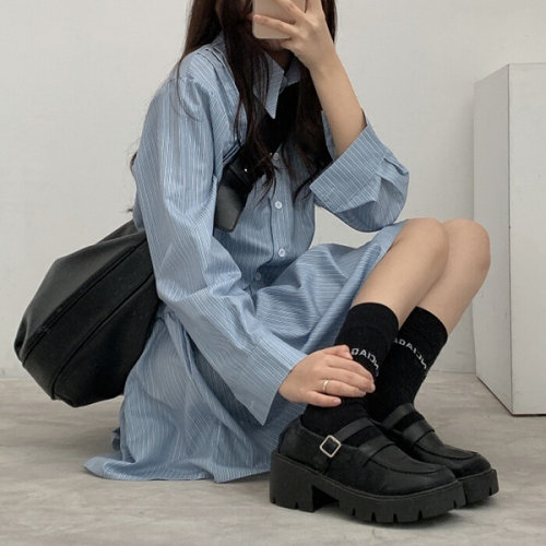 입꼬 / 마이 루즈 스트라이프 셔츠 플레어 원피스2color