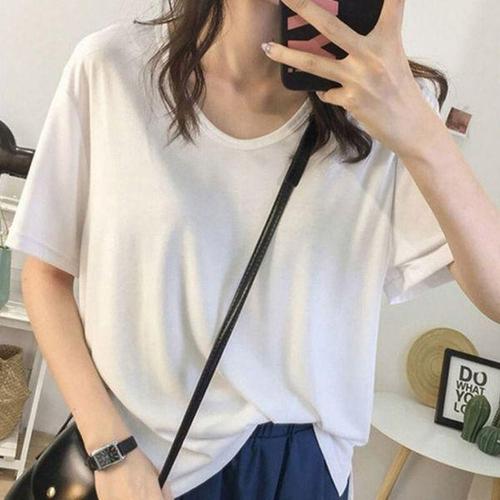 [에이치플러스몰]무지 반팔티셔츠 여성 여름 루즈핏 기본 롱티셔츠