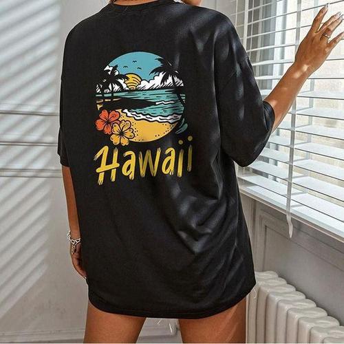 [에이치플러스몰]롱티 박시핏 비치웨어 롱티셔츠 오버핏 트로피컬