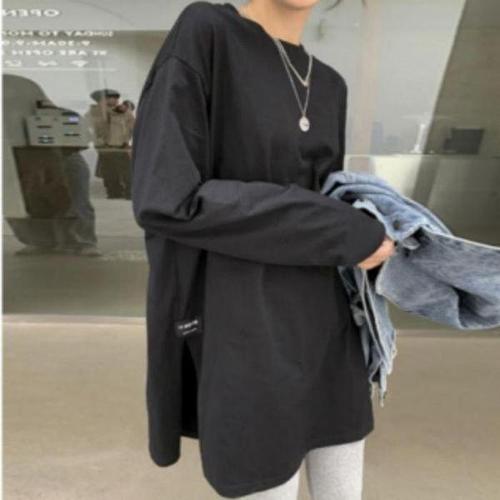 [셀러허브_여성트랜드패션]여성 간절기 사이드슬릿 베이직 티셔츠 루즈핏 데일리 롱슬리브 긴팔