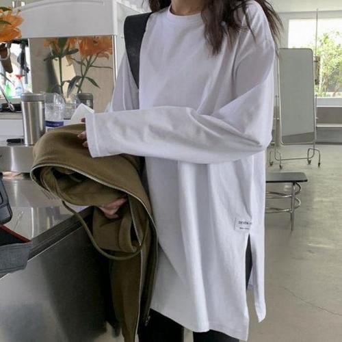 [셀러허브_여성트랜드패션]여자 티셔츠 흰티 오버핏 옆트임 긴팔 무지 롱티