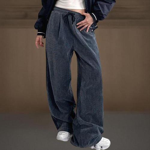 [신상오픈런]여성 벨벳 청바지 루즈핏 와이드 밴딩 포켓 겨울용